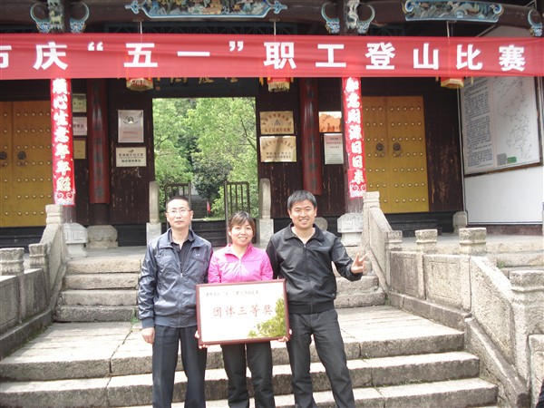 4月24日上午,由张红伍、刘文康、王丽兰老师组成教工登山代表队,在市总工会组织的登山比赛中努力拼搏、奋勇争先,在65支参赛队伍中脱颖而出,获得团体三等奖的优异成绩。