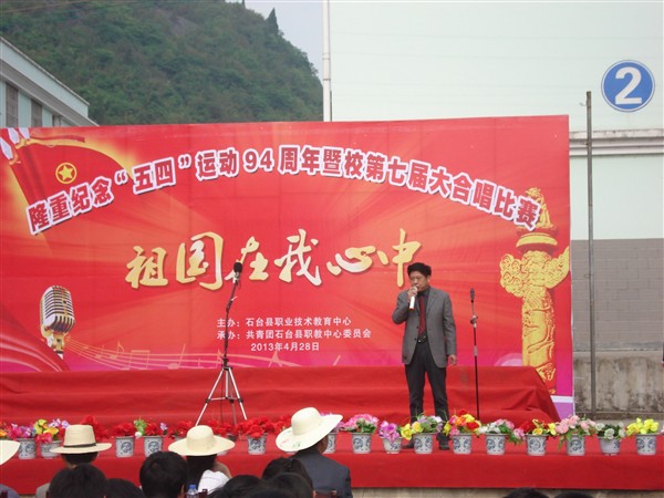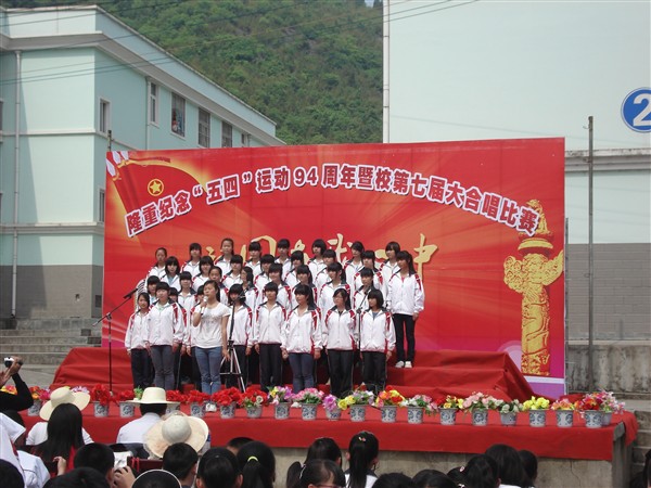 4月28日上午,县职教中心隆重举行了以“祖国在我心中”为主题的“五四”大合唱比赛。本次比赛旨在为庆祝“五四”青年节,纪念“五四”运动94周年,加强爱国主义教育,宏扬民族精神,丰富校园文化。共有来自全校17个团支部的近900名团员青年参加了此次大合唱比赛。