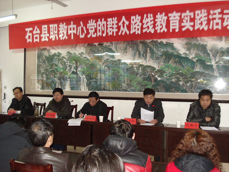 3月7日下午,石台职教中心按照县教育局党组的部署与要求,召开了党的群众路线教育实践活动动员大会。会议由学校副校长杨新昌同志主持,全体教职工参会。县教体局第一督导组组长刘记华同志到会指导。