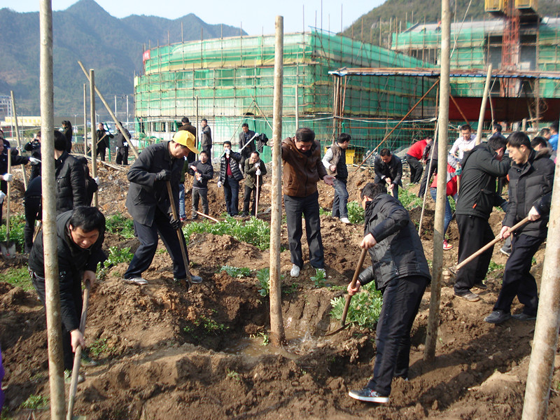 在植树现场,党员教师们挥锹铲土、施肥踩实、扶苗浇水,每个环节、每道工序都做得极为认真细致,大家挥汗劳动一个多小时。