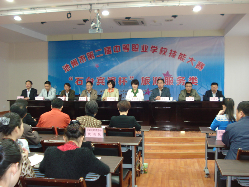4月27日,由我校承办的池州市第二届中等职业学校技能大赛“石台宾馆杯”旅游服务类比赛在石台宾馆成功举行。市教育局副局长许雪梅、县政府副县长徐爱莲、市教育局职成科科长金卫东、县人才办、教育局、财政局、人社局、经信委及协助举办本次大赛的石台宾馆领导和嘉宾出席了开幕式,开幕式由县教育局局长詹成林主持。