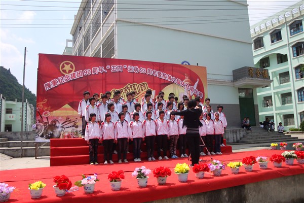 5月4日下午,我校在操场举行主题为“青春颂祖国”纪念建团90周年、“五四”运动93周年暨第六届爱国歌曲大合唱比赛。