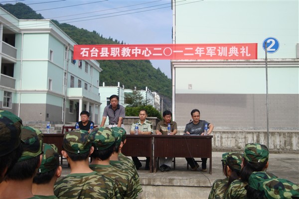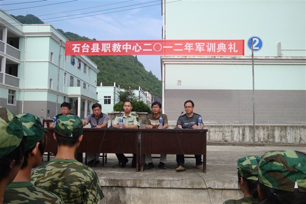 8月21日上午,我校在操场举行了2012年军训开训典礼,为期5天的高一新生军训拉开帷幕。本次军训共有250余名学生参加,由石台县消防大队武警官兵施训,将开展多项军事训练和军事教育活动。